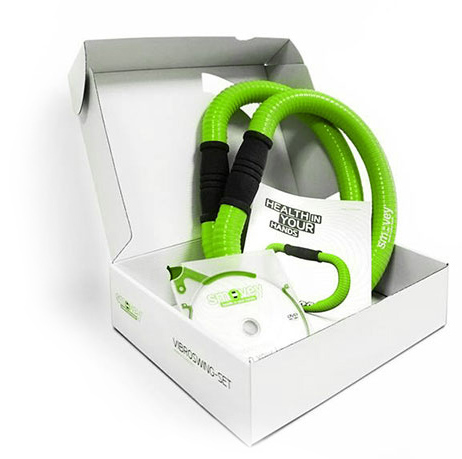 Set obročev Smovey® se sestoji iz nagrbančene spiralne cevi, 4 jeklenih kroglic ter z ročajem s sistemom za dušenja upora.